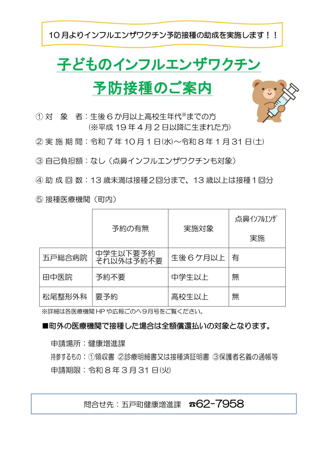 今年度もインフルエンザ予防接種費用の助成を10月1日(水)から実施します。